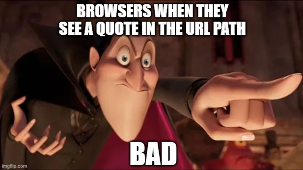 (Un)Fortunately, while such a payload may succeed on older or lesser-known browsers, it fails to bypass modern browser filters, which will automatically URL-encode the single quote ' to %27 before firing the HTTP request.