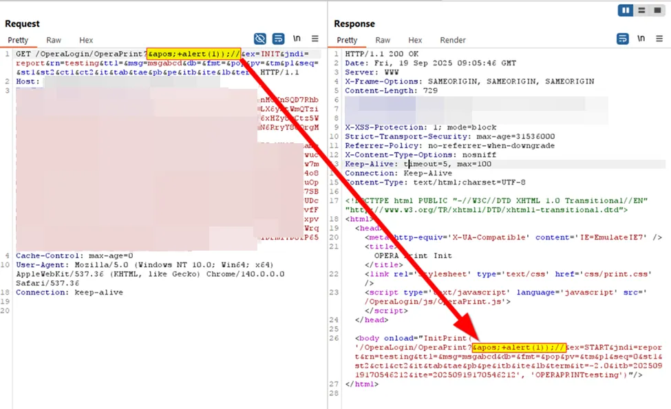 - Description: A reflected cross-site scripting (XSS) vulnerability has been identified in Oracle Hospitality OPERA 5, versions at and below 5.6.19.23, 5.6.25.17, 5.6.26.10, 5.6.27.4, 5.6.28.0. Attackers can leverage the vulnerability to deliver social engineering attacks and execute client-side code in the victim’s browser.