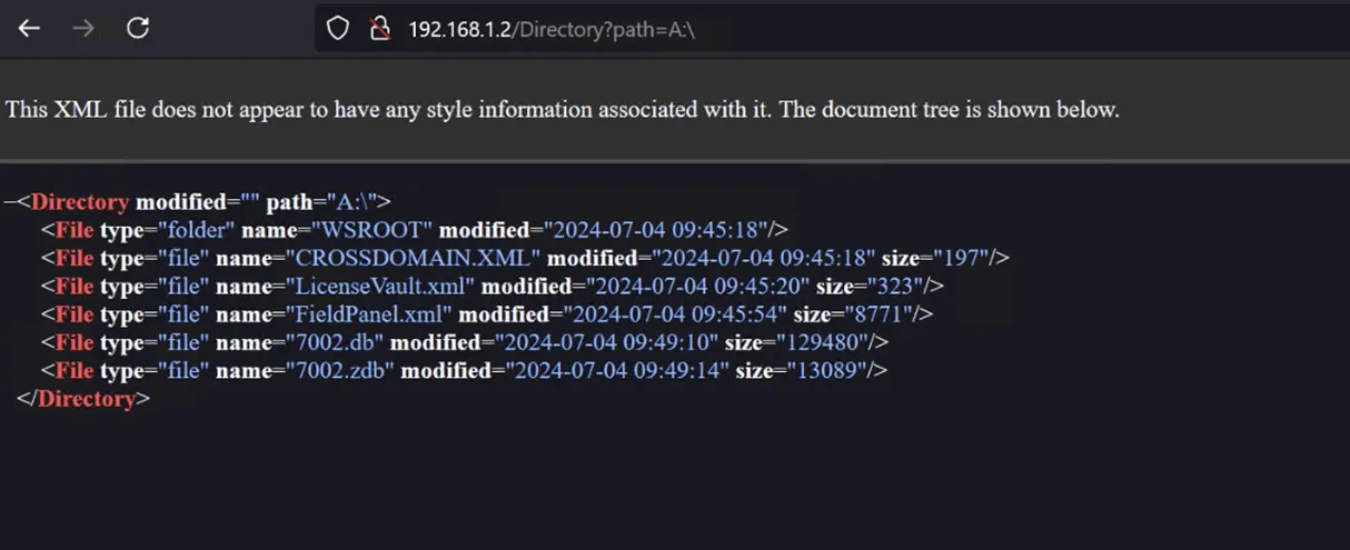 Analysis of the HTTP server quickly revealed the presence of a path traversal bug in the HTTP server, which we later validated to be CVE-2017-9947. This 7-year-old vulnerability enables remote attackers with network access to the integrated HTTP server to obtain information stored on the FAT file system.