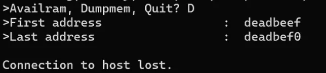 And here comes our first finding: what happens if we dump memory at a higher address?