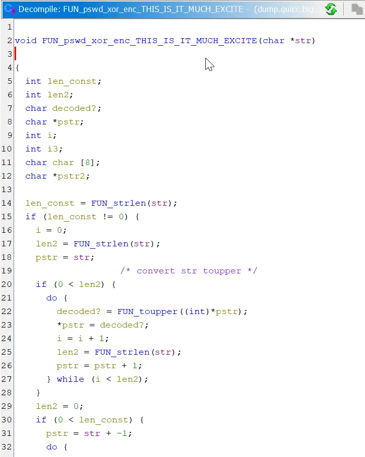pcVar3 - 1 - param_1is a good clue that the function is doing some index-of or counting operation sinceparam_1is the start of the string. Analysing the code, no other special operation is performed aside from incrementingpcVar3andpcVar4. - Hence, ignoring the weird constants in the nested while-loop, we can conclude with relative certainty that this is our good friend