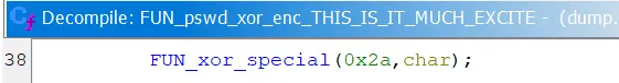 It then performs multiple xor operations on the string, looping through each character. Each byte is xored with a variety of numbers. And interestingly, byte 0x2a (42) shows up multiple times. Coincidence?