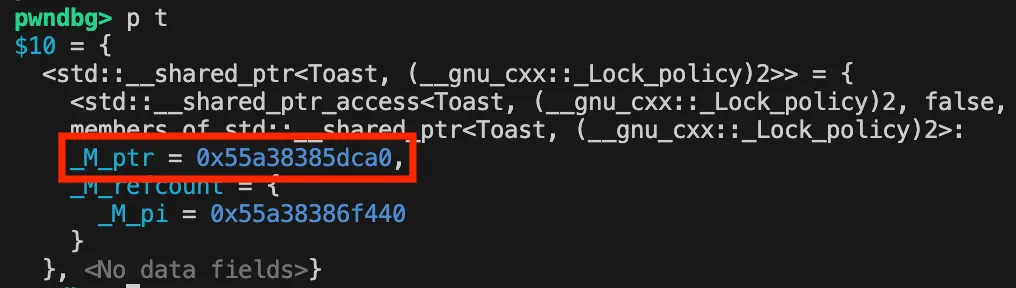 Toast | Fruit | Address Leak (ASLR Bypass) | leak the vtable |